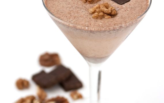 Čokoládovo-ořechové smoothie zdobené vlašskými ořechy