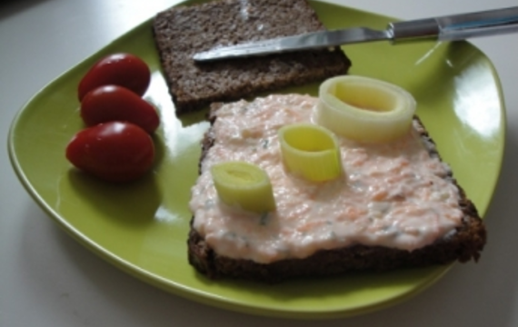 Tvrdý sýr nastrouháme do mísy a přidáme k němu bílý jogurt. Cibuli nakrájíme nadrobno a přidáme do mísy. Kapii pokrájíme také najemno a přidáme do mísy. Osolíme, opepříme a posypeme nasekanou pažitkou.